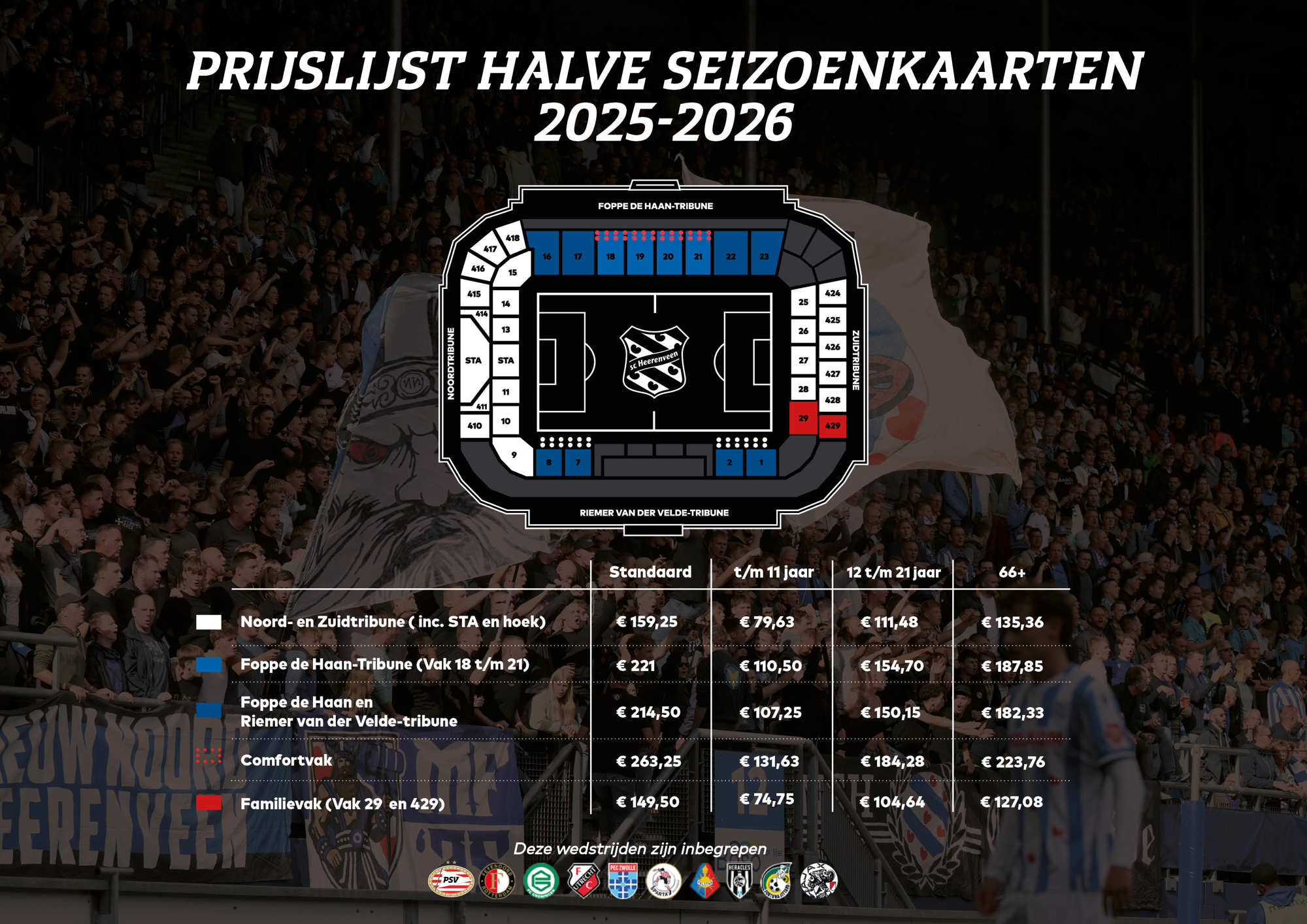 Sluit jij je ook bij de sc Heerenveen-familie aan voor de komende tien wedstrijden? Zo heb jij je eigen vaste stekkie tegen onder andere PSV, Feyenoord, Ajax en FC Groningen.