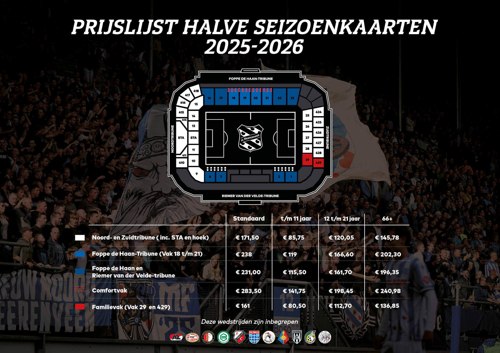 Bestel je vanaf 6 december (na de wedstrijd tegen PSV) een halve seizoenkaart, dan heb je toegang tot alle Eredivisiethuiswedstrijden na de winterstop.