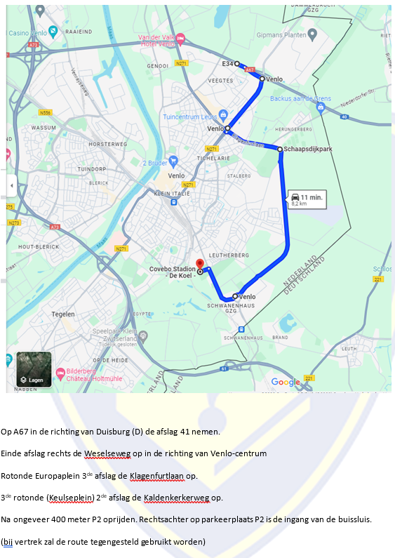 - Parkeerlocatie autocombi: Supporters van sc Heerenveen die met de auto komen wordt geadviseerd om te parkeren op industrieterrein 'Spaanse polder'.